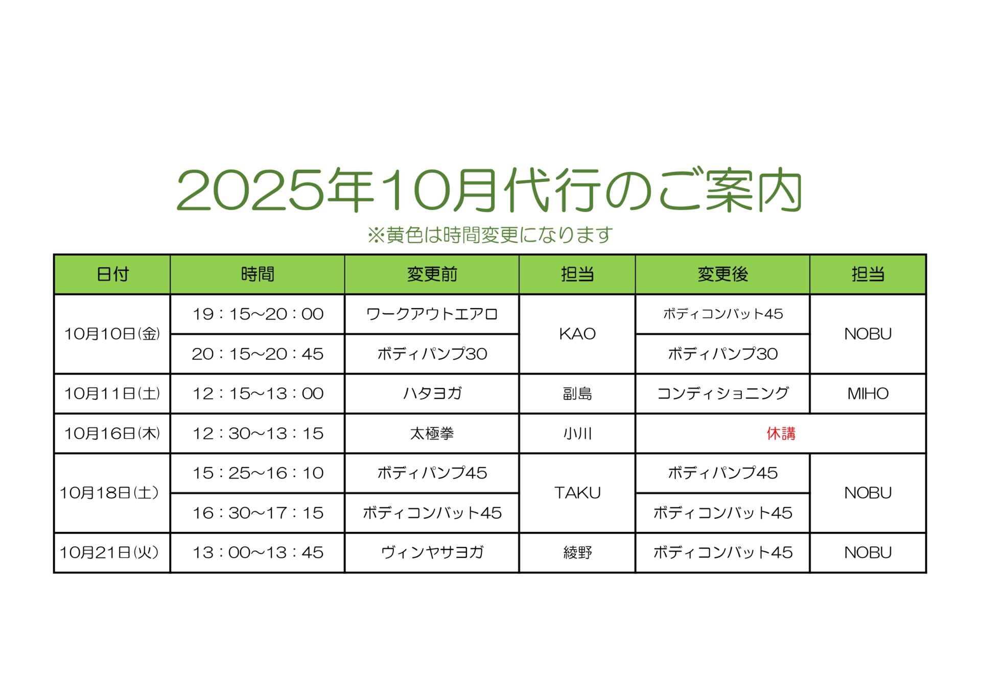 10月急遽代行のお知らせ(10月7日時点)