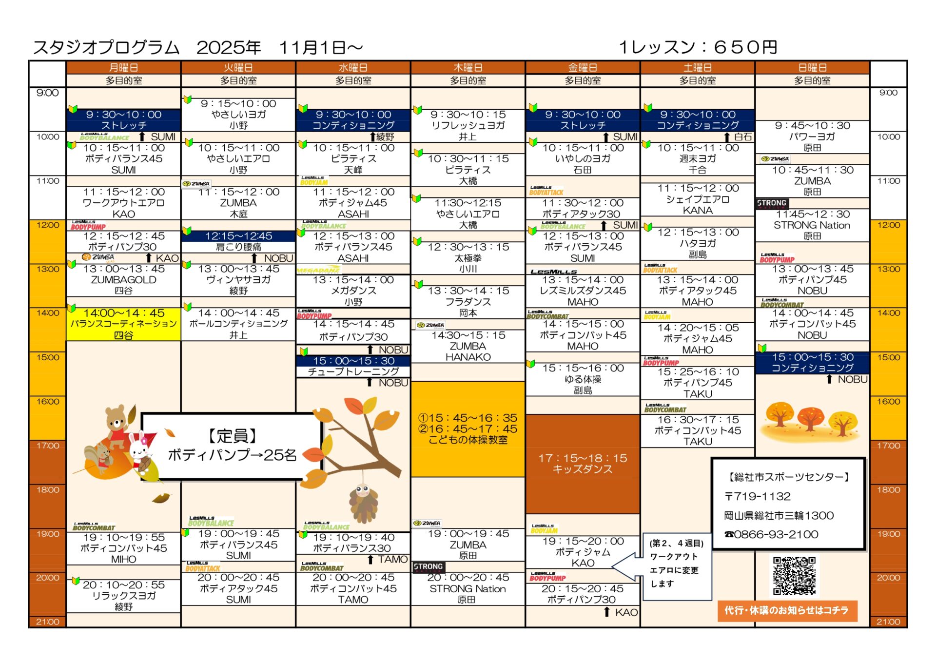 11月1日(火)よりスタジオプログラムはこちらになります。