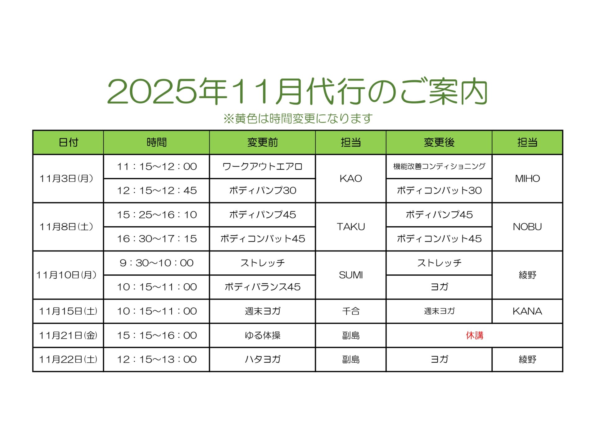 11月代行のお知らせ(10月28日時点)