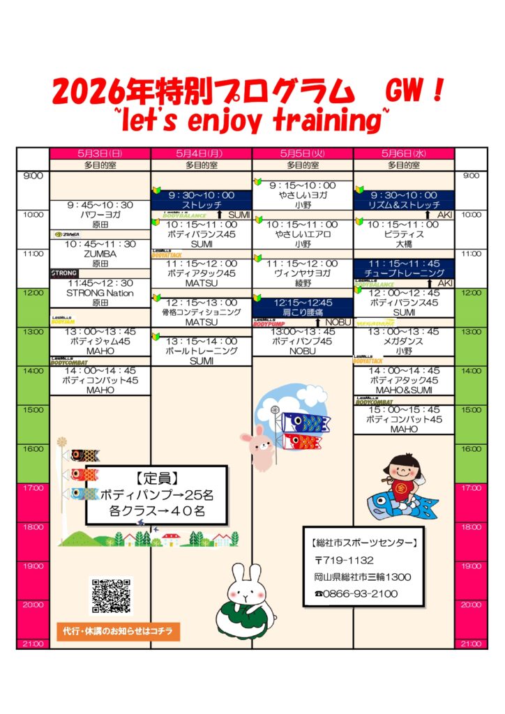 5月3日(日)~5月6日(水)の期間スタジオプログラムが特別プログラムに変更いたします