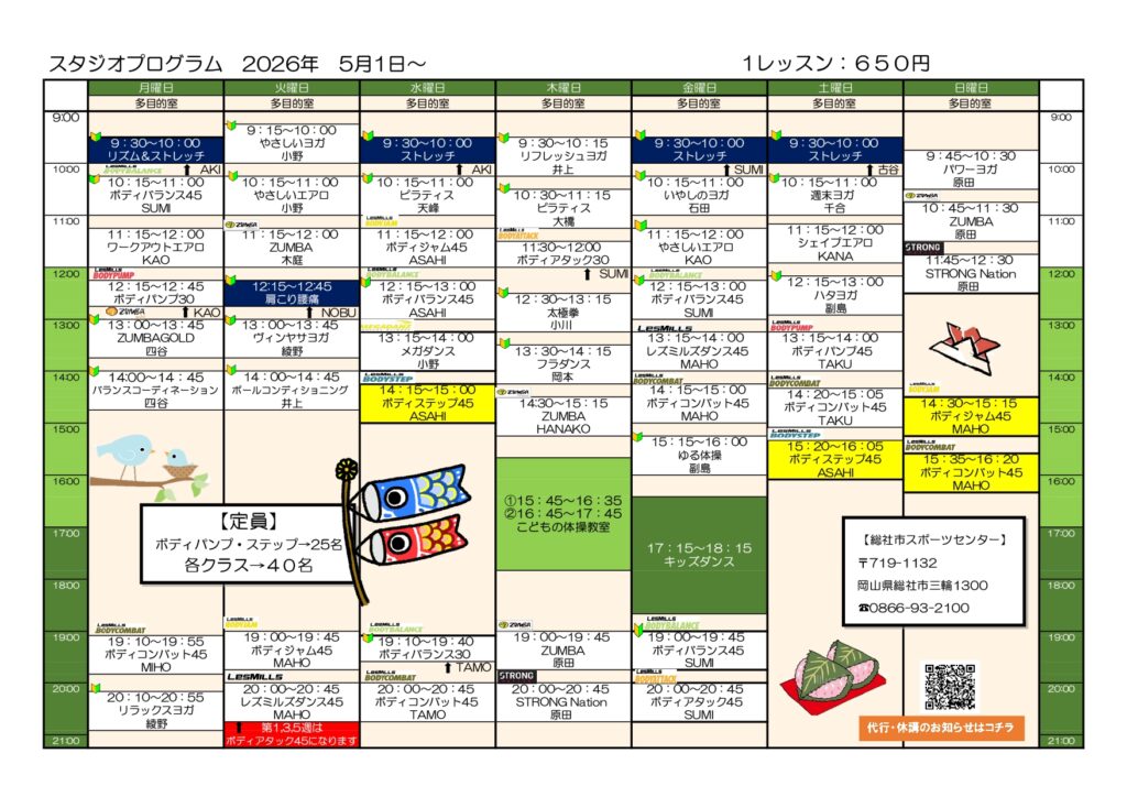 2026年5月1日(日)よりスタジオプログラムはこちらになります。